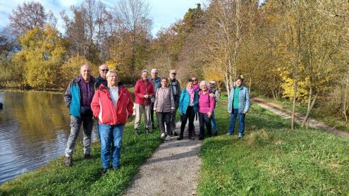 Gestartet war man am Sportheim in Hochmössingen. Von dort ging es an den außerordentlich idyllischen Hochmössinger Weiher (siehe Foto), bei welchem man den Herbst von der schönsten Seite auf sich wirken lassen konnte. Alsdann ging es durch den Wald nach Weiden und entlang der Feriensiedlung ‚Alte Reute‘, sehr ansehnlich durch die schmucken Häuschen, nach Marschalkenzimmern.